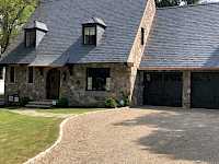 Long & curved stabilized gravel driveway, using our commercial grade GD 60-40 Foundations - Rhode Island New YorkInstalled here, our Commercial Grade GD Gravel 60-40 (with lateral drainage features). David's crew created this very European, tidy, low maintenance gravel driveway leading to his lovely home in Rhode Island. David wanted a permeable driveway that was easy to construct, and that's what he received. |